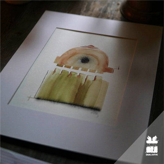 🤖💀🎨#127 "Cylopea: The Verdant Ochre Gazer" Aquarell Monster & Roboter Kunst