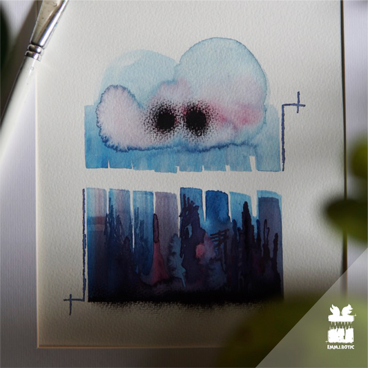 🤖💀🎨#146 "Bluewhisker: The Sugary-Eyed Mousesprite" Aquarell Monster Kunst