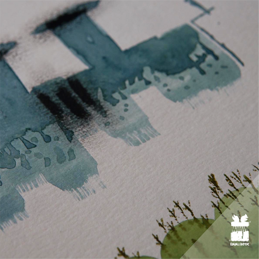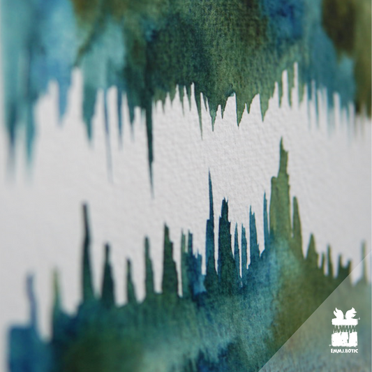🤖💀🎨#052 "Woodland Rainbot: The Aquatic Arboreal Circuit" Aquarell Roboter Kunst