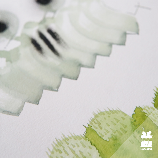 🤖💀🎨#051 "Frogwood Whimsy: The Arboreal Gazer" Aquarell Monster Kunst