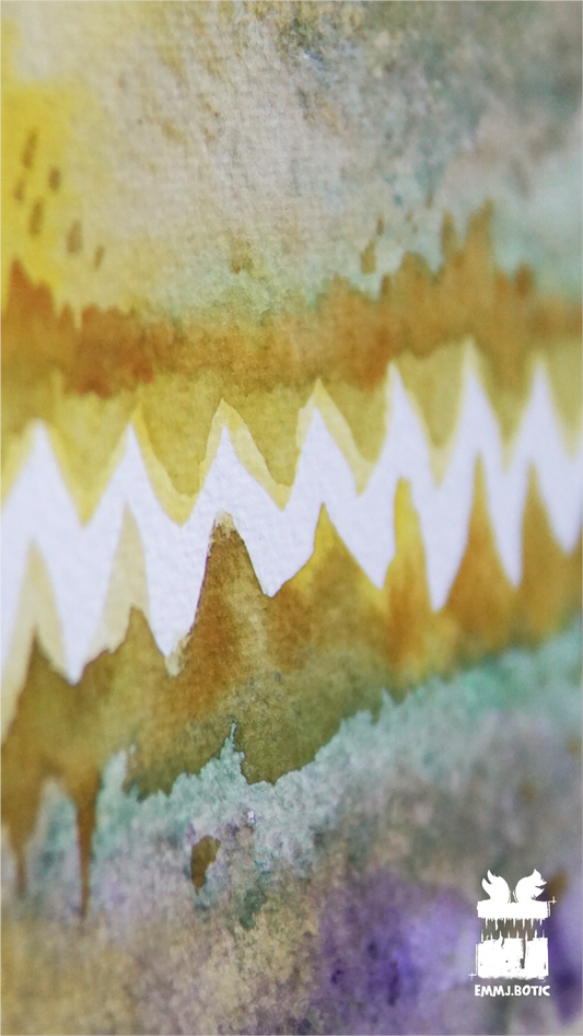 🤖💀🎨#260 „Verdant Twilight Fiend: Horned Marbled Specter" Aquarell Monster Kunst