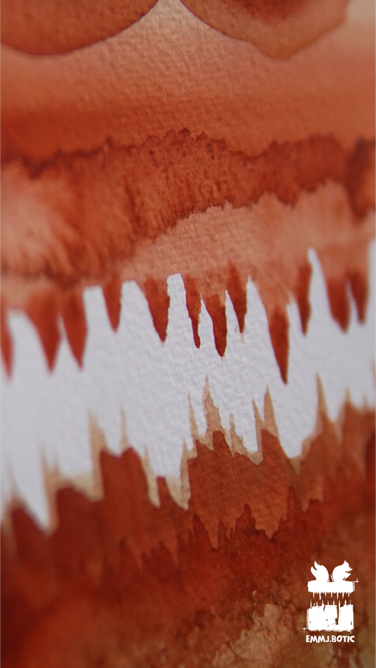 🤖💀🎨#274 "Blood Orange Fury: Jagged Gaze" Aquarell Monster Kunst