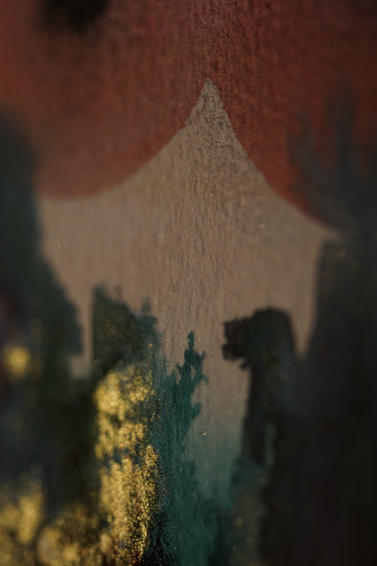 🤖💀🎨#283 "Ruby Inferno Titan: Gilded Fury" Aquarell Monster Kunst