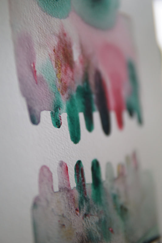 🤖💀🎨#293 "Pastel Prism Creature: Verdant Gaze and Rosy Grin" Aquarell Monster Kunst