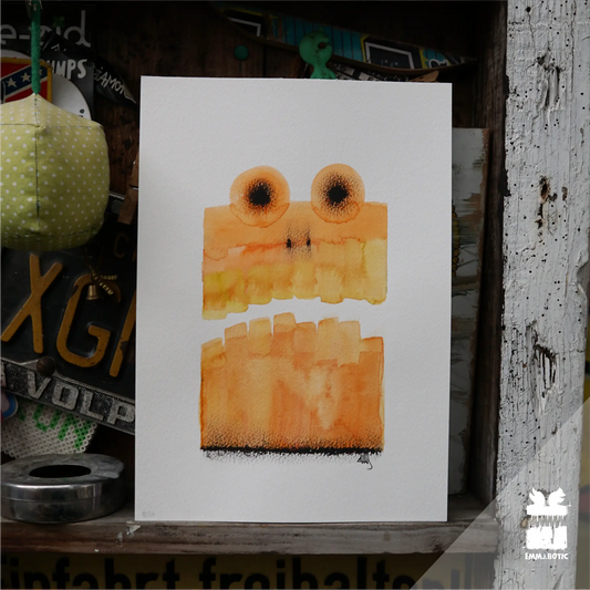 🤖💀🎨#051 "Frogwood Whimsy: The Arboreal Gazer" Aquarell Monster Kunst
