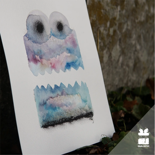 🤖💀🎨#146 "Bluewhisker: The Sugary-Eyed Mousesprite" Aquarell Monster Kunst