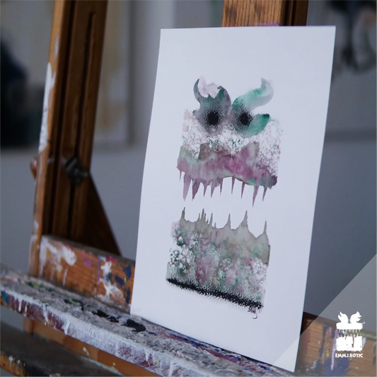 🤖💀🎨#246 „Emerald Gaze: The Verdant Fang“ Aquarell Kunst Monster