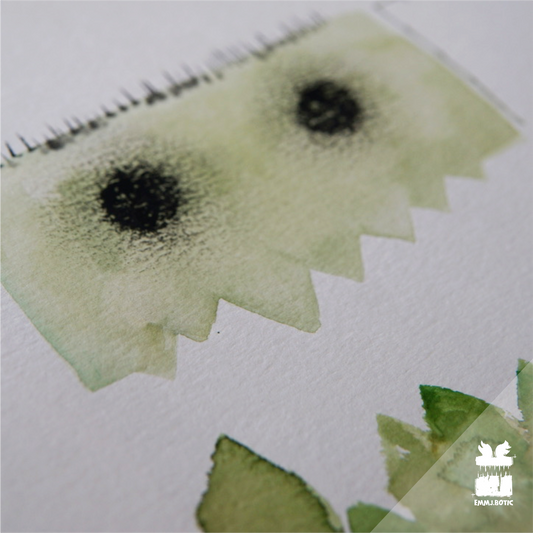 🤖💀🎨#127 "Cylopea: The Verdant Ochre Gazer" Aquarell Monster & Roboter Kunst