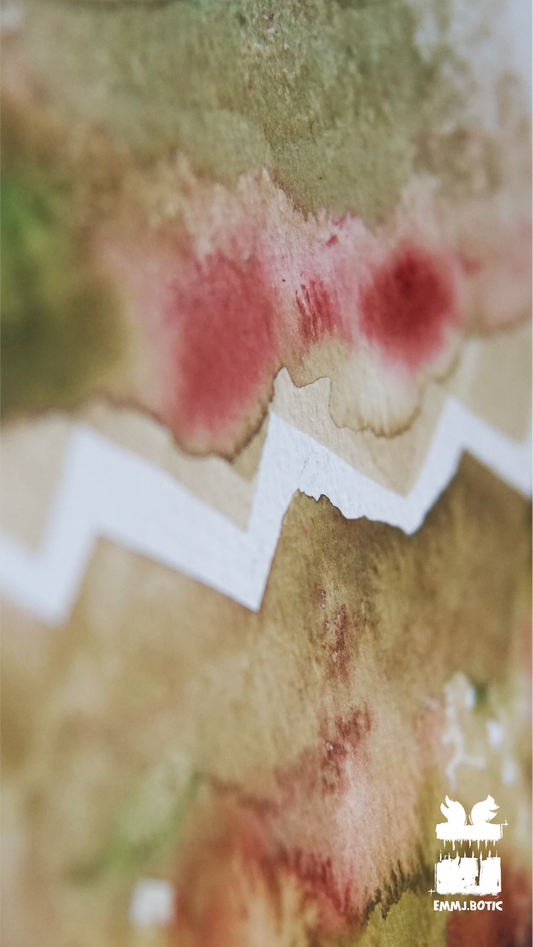 🤖💀🎨#266 "Viridian Inferno: Crimson Marbled Gaze" Aquarell Monster Kunst