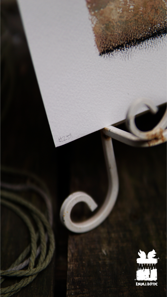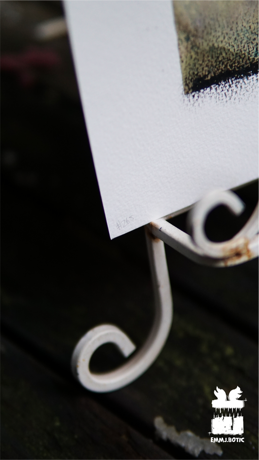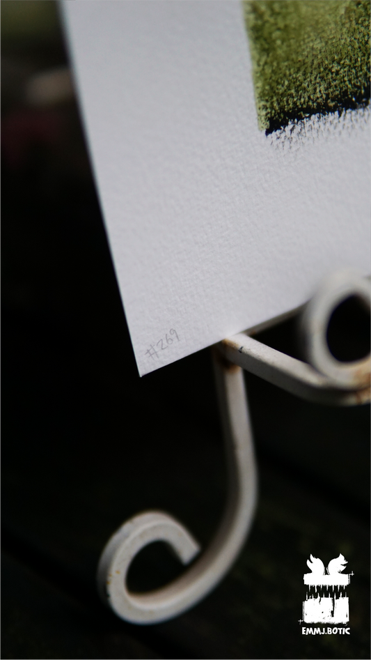 🤖💀🎨#276 "Rustic Sentinel: Olive Spike Specter" Aquarell Monster Kunst