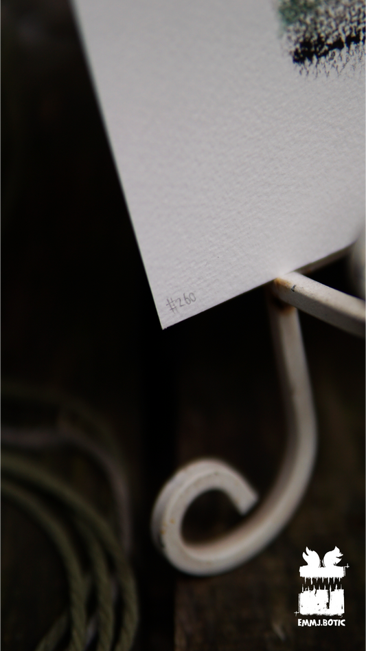 🤖💀🎨#260 „Verdant Twilight Fiend: Horned Marbled Specter" Aquarell Monster Kunst