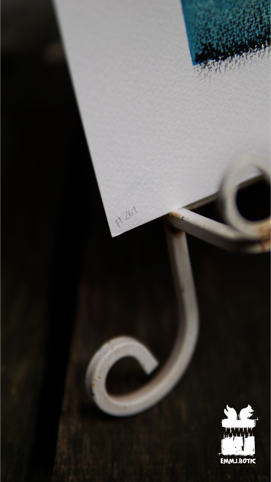 🤖💀🎨#267 "Verdant Azure Behemoth: Sapphire Marbled Stare" Aquarell Monster Kunst