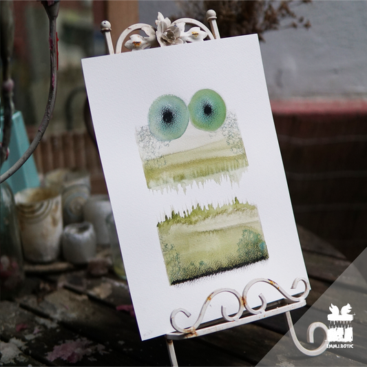 🤖💀🎨#270 "Emerald Gazer: Earthbound Marbled Fiend" Aquarell Monster Kunst