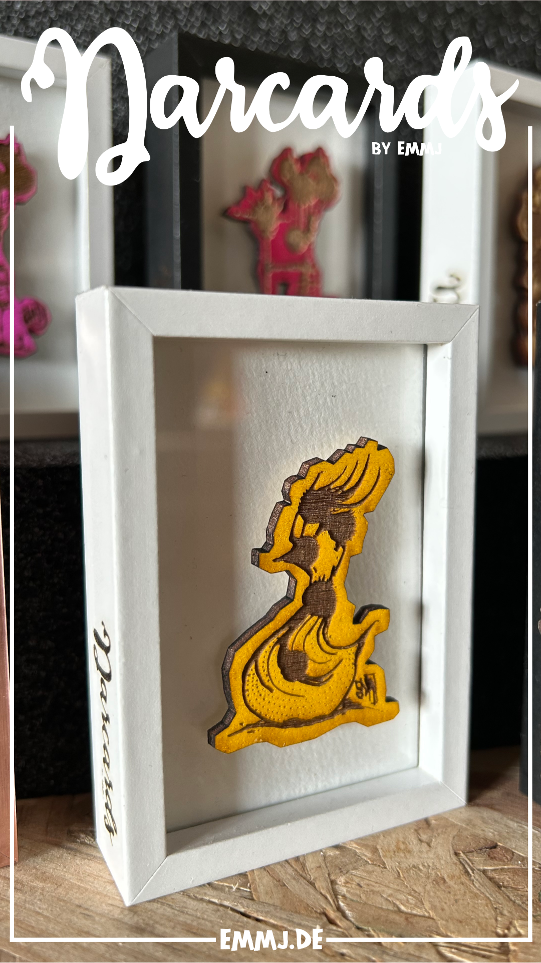 Mini Kunstwerk im Bilderrahmen – DARCARDS Glasbild (Lasertechnik)